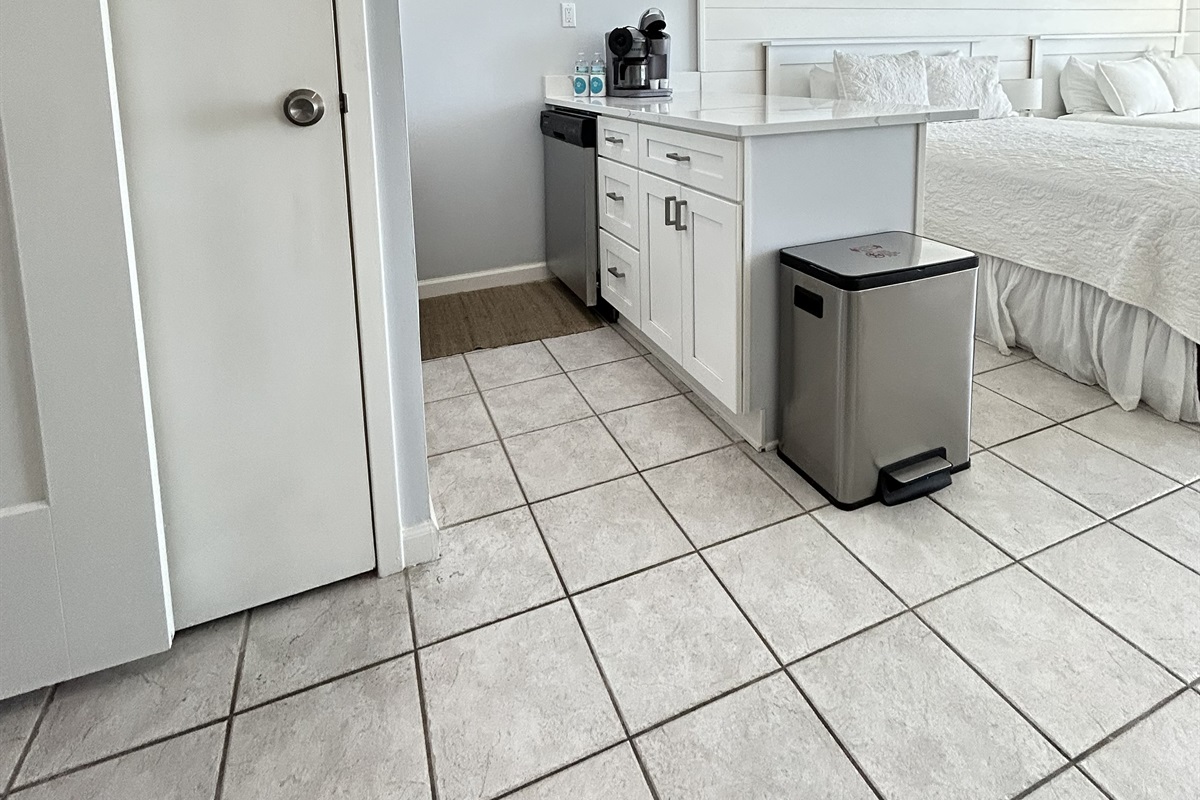 - Full kitchen with quartz counters, new appliances, dishwasher, Keurig coffee bar