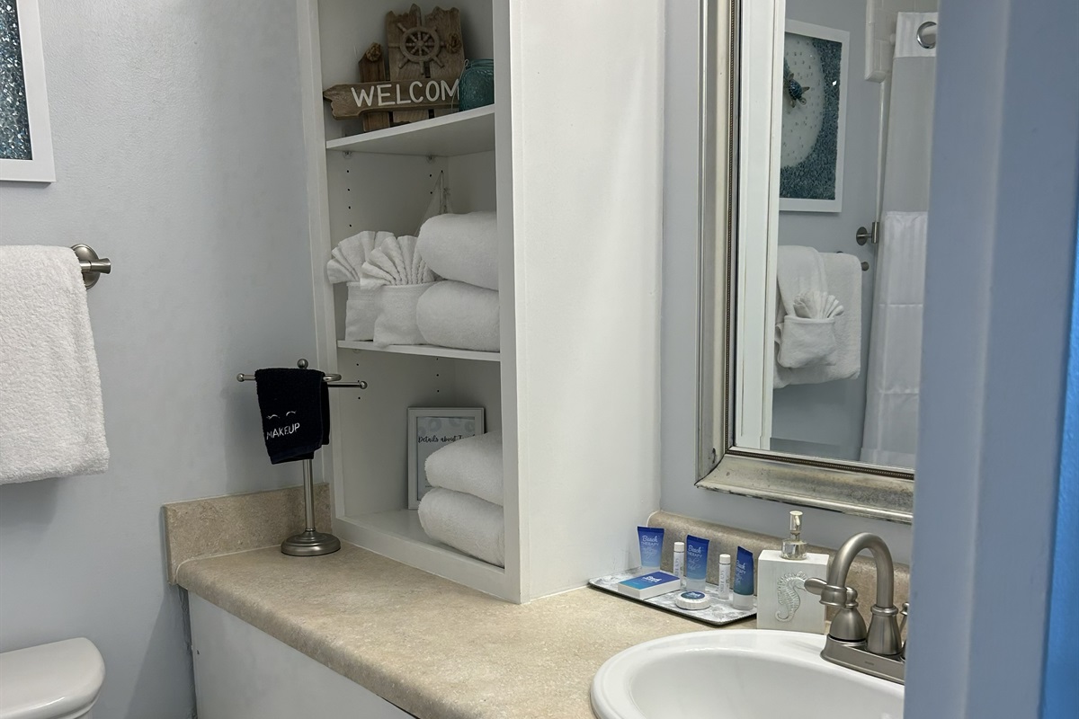 - Custom pine shiplap walls, fresh paint, updated coastal décor